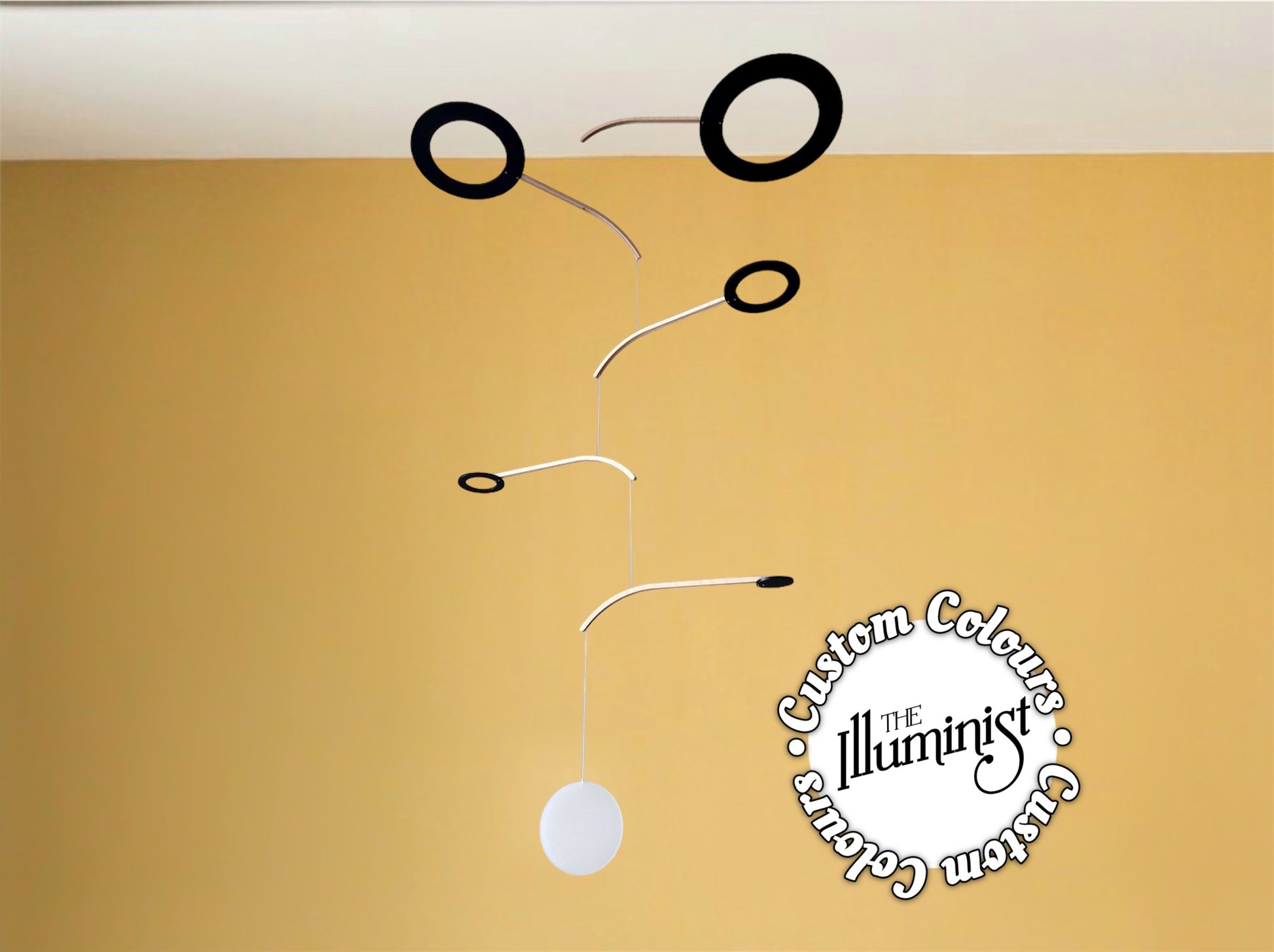 Custom Colour Large Kinetic Mobile Sculpture, Black Hanging Adult Mobile, Mid Century Modern Art Mobile, Calder Minimal Circle Mobile, Halo The Illuminist